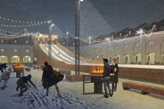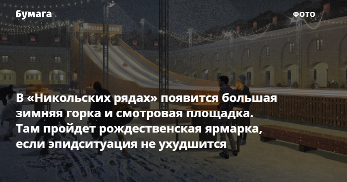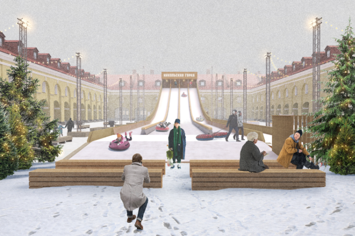 В декабре в общественном пространстве «Никольские ряды» на Садовой улице установят большую зимнюю горку и смотровую башню с видом на историческую часть Петербурга. Об этом «Бумаге» сообщили в пресс-службе проекта.