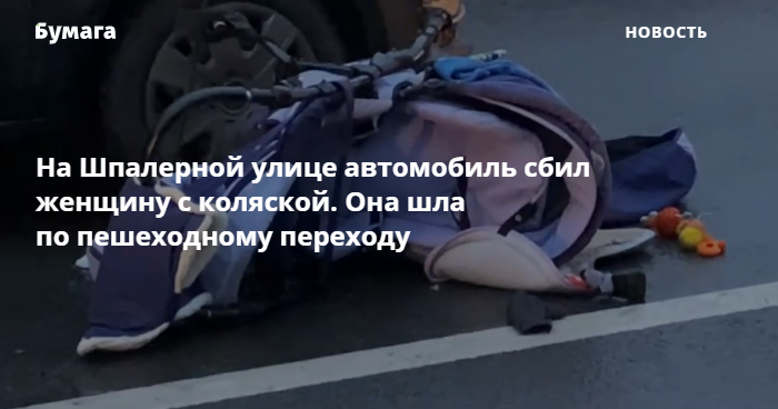На Шпалерной улице утром 26 ноября автомобиль Volkswagen Polo сбил женщину с двумя детьми. Об этом «Бумаге» сообщили в пресс-службе ГУ МВД.