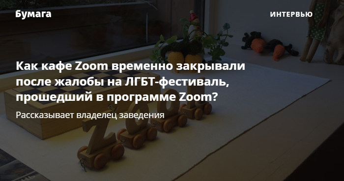 Во время этих проверок один из полицейских показал нам скриншот экрана, на котором видно телеграм-канал или чат в WhatsApp. Там было сказано, что часть встреч ЛГБТ-кинофестиваля «Бок о бок» пройдет в Zoom. По всей видимости, кто-то решил, что Zoom из сообщения — это не сервис, а наше кафе. Другого логичного объяснения я не могу найти и за всё это время нам его никто не дал.
