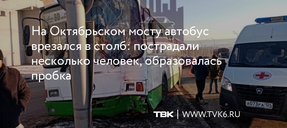 На Октябрьском мосту автобус врезался в столб: пострадали несколько человек, образовалась пробка