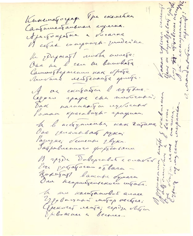 Стихи вошли позднее в сборник «С тобой и без тебя», посвященный знаменитой актрисе Валентине Васильевне Серовой. Сборник этот, несомненно, — лучшее из обширного, многотомного наследия писателя. Кстати, товарищ Сталин так высказался об этой очень хорошей небольшой книжке: «Достаточно было двух экземпляров. Один — ему, другой — ей». Это претендующее на добродушный легкий упрек примитивное замечание с пиететом повторялось (сам слышал) как глубокое и остроумное высказывание. Видимо, великий вождь считал, что остальные миллионы советских людей должны читать не любовную лирику, а «Краткий курс истории ВКП(б).
