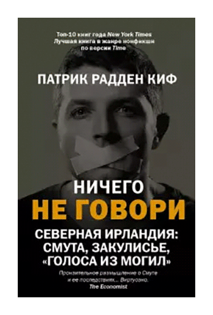 Американский журналист-расследователь Патрик Радден Киф писал блистательные репортажи об охоте на мексиканского наркобарона Эль Чапо и нетипичном масс-шутинге в Алабамском университете. Его книги под стать репортажам — посвящены банде «Змеиная голова», занимавшейся нелегальным ввозом китайских мигрантов, и тому, как спецслужбы подслушивают американских граждан с целью раннего выявления террористов. «Ничего не говори» — третья книга Кифа, удостоившаяся наибольшего числа наград. Это попытка разобраться в конфликте в Северной Ирландии, в основе которой лежат не менее сотни интервью, анализ документов и четыре года работы.