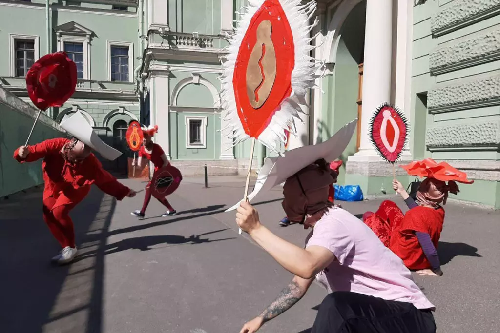Нынешним летом у Мариинского театра активистки фемдвижения организовали перформанс в поддержку ЛГБТ-активистки Юлии Цветковой. Участницы были в красных костюмах и держали в руках картонные макеты вульв с надписями «Моя вульва — это моя вульва», «Я есть, а вы?», и «Порнография у вас между ушами». Одну из участниц акции задержали и оштрафовали на 10 тысяч рублей.