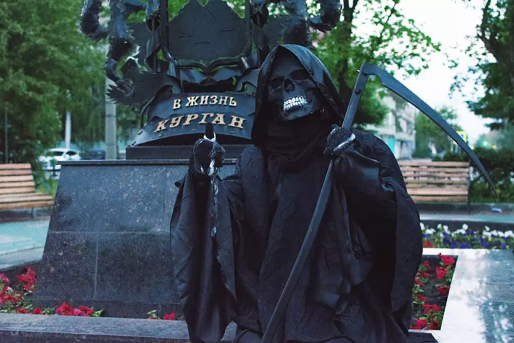 Житель Кургана вышел в город в костюме смерти и с плакатом «Мы мученики и попадем в рай, а они просто сдохнут», цитирующим слова Путина о том, чем может закончиться международный конфликт с применением ядерного оружия. Активист предлагал подписаться под вариантом «рай» или «просто сдохнуть», в зависимости от того, чего хотели встреченные им прохожие. Как рассказали в социальных сетях горожане, некоторые ставили под вариантом «рай» свою подпись, а в «просто сдохнуть» вписывали своих бывших партнеров и супругов, родственников, коллег по работе.