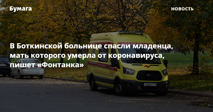 В ноябре в Боткинской больнице в Петербурге спасли младенца, мать которого умерла от коронавируса на ИВЛ. Его передали в органы опеки, потому что другие близкие родственники ребенка, о которых известно, тоже скончались от COVID-19. Об этом пишет «Фонтанка» со ссылкой на знакомых матери и собственные источники в медицинских кругах.