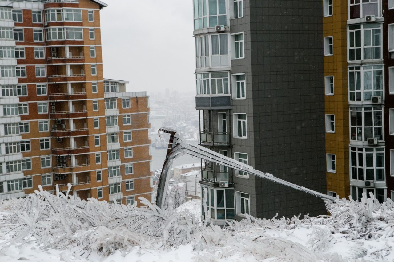 Владивосток — город сложного ландшафта и бездорожья. Он расположен на крутых сопках, и все дороги почти вертикальные. С обледенением такое сочетается плохо: пожилые, родители с детскими колясками и люди с ограниченными возможностями по здоровью не могут выйти на улицы. А машины, в том числе скорой помощи, — заехать во дворы по зеркально гладкой поверхности. Из-за этого многие люди оказываются без медицинской помощи, не вывозится мусор и не доставляются продукты в придомовые магазины. В наиболее пострадавших районах пропали газовые баллоны, печки и даже хлеб и питьевая вода: чтобы выжить, местные топят в кастрюлях снег и лед. Коллапс достиг апогея.