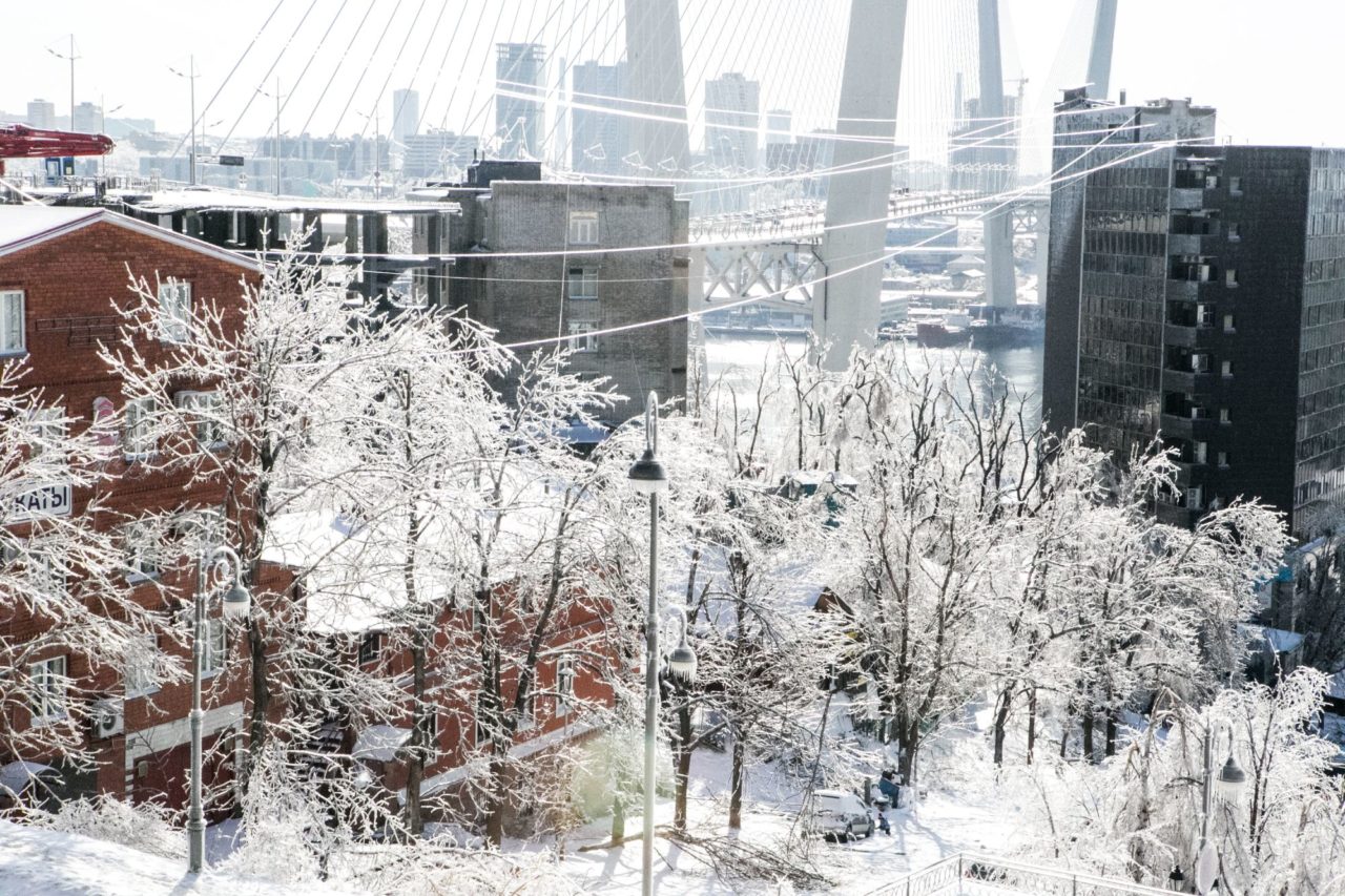«Стеклянные» деревья вызывали изматывающие чувства от того, как это красиво и страшно одновременноФото: Наталья Булкина По улицам Владивостока перестали ходить трамваи и троллейбусы. Электрички и рейсовые междугородние автобусы также оказались недоступны, были отменены авиарейсы в близлежащие города. 21 ноября закрыли Русский мост, соединяющий материковую часть города с островом Русским, где живет около 4 тысяч человек, — Владивосток первым в мире столкнулся с обледенением вантового моста.