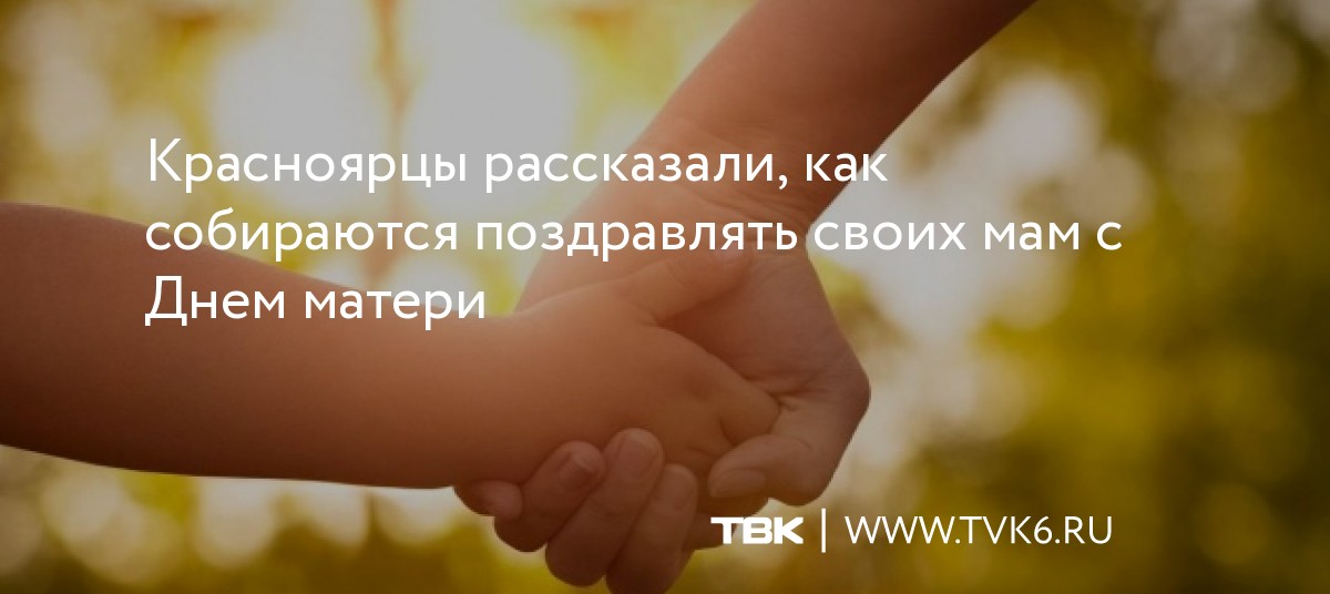 29 ноября в России будут отмечать День матери. Кто-то стартельно клеит аппликацию из цветной бумаги, а кто-то готовит подарки посерьезнее. Но абсолютно каждый в этот день хочет сказать маме самые теплые слова. Съемочная группа «ТВК Красноярск» спросила у красноярцев, какие поздравления они приготовили для своих мам.