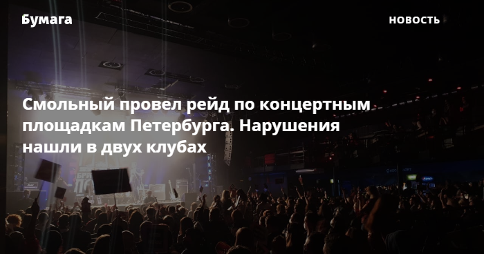 Вечером 28 ноября сотрудники Смольного выборочно проверили мероприятия, проходившие на концертных площадках Петербурга. Нарушения правил по COVID-19 обнаружили в двух клубах, сообщает комитет по культуре.