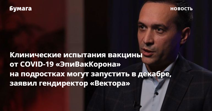 Клинические испытания вакцины от COVID-19 «ЭпиВакКорона» на подростках могут запустить в декабре, заявил гендиректор «Вектора»