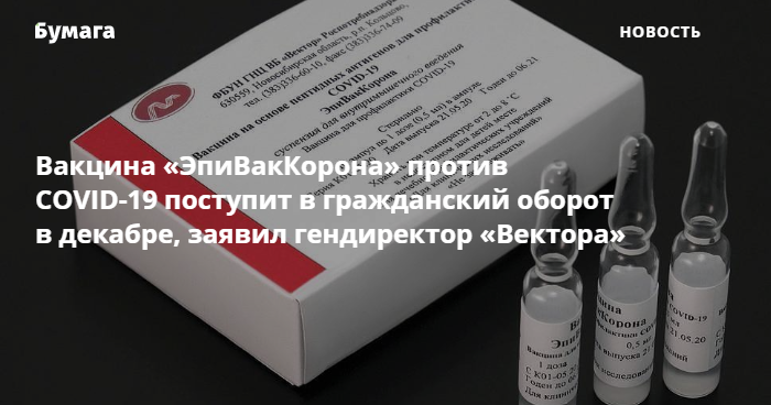 Вакцина «ЭпиВакКорона» поступит в гражданский оборот в декабре, заявил гендиректор «Вектора»