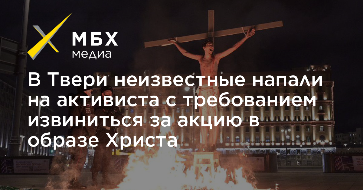 В Твери возле железнодорожного вокзала на активиста Павла Крисевича напали двое неизвестных. Они требовали встать на колени и извиниться за акцию в образе Христа, после чего облили акциониста зеленкой. Об этом сам Крисевич сообщил «МБХ медиа».