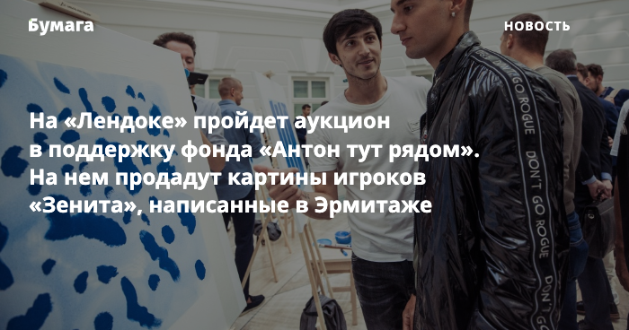 В открытой киностудии «Лендок» 4 декабря пройдет благотворительный аукцион «Синий квадрат» в поддержку фонда «Антон тут рядом». На нем продадут картины, написанные футболистами «Зенита» в Эрмитаже. Об этом сообщает издание «Собака.ru».