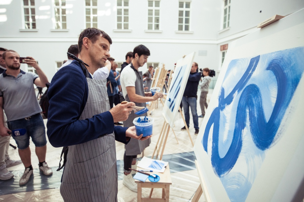 Свои варианты «Черного квадрата» футболисты написали в июле 2019 года, а позднее в Главном штабе прошла выставка этих работ.