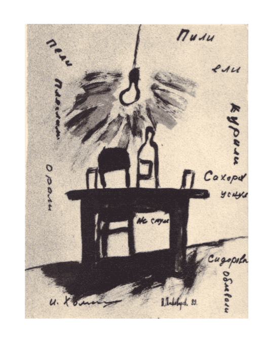 Холин, рисуя мир после ГУЛАГа, выходит за пределы минимализма и призрачности — он видит зеркальные шкапы, комоды, диваны. В барачном аду есть пускай тусклый, но свет. Из него видно небо. Здесь еще нет детей, но уже есть мухи.