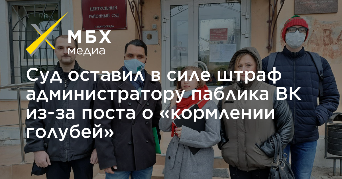 Суд оставил в силе штраф администратору паблика ВК из-за поста о «кормлении голубей»