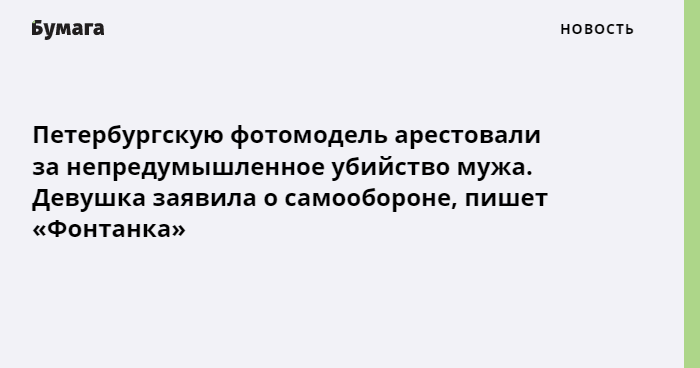 В Петербурге фотомодель арестовали за убийство мужа