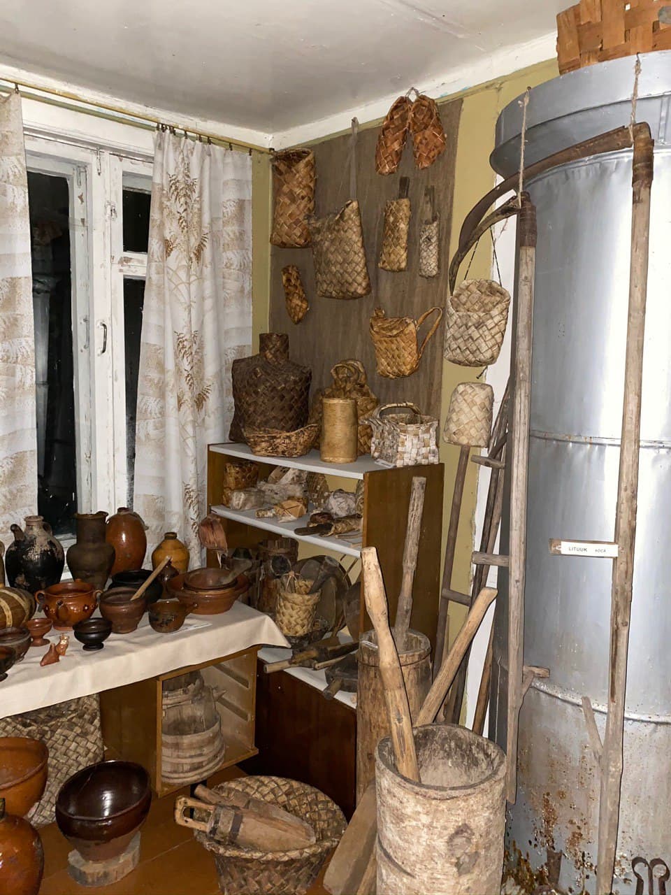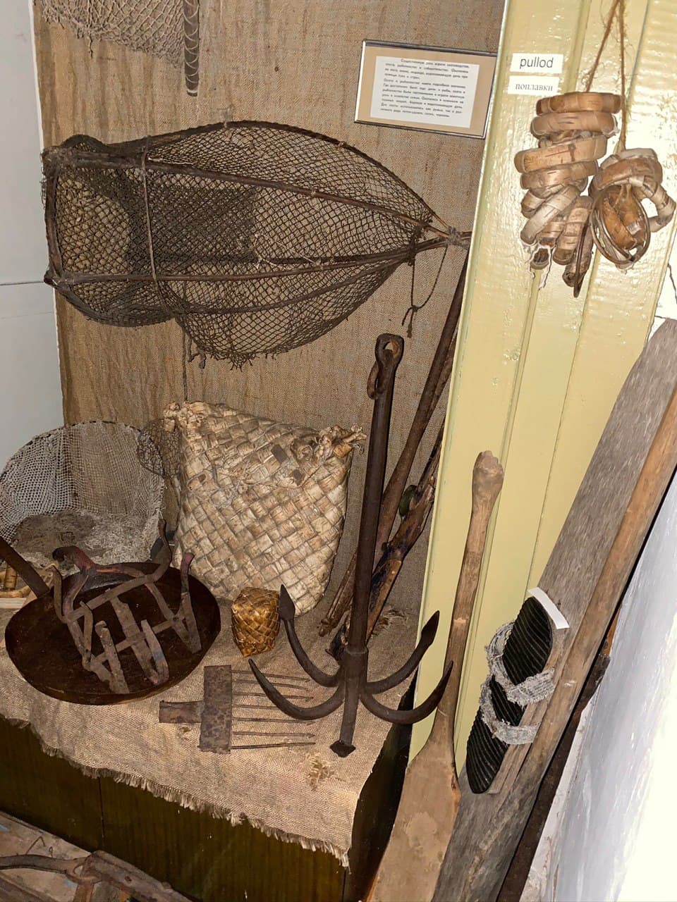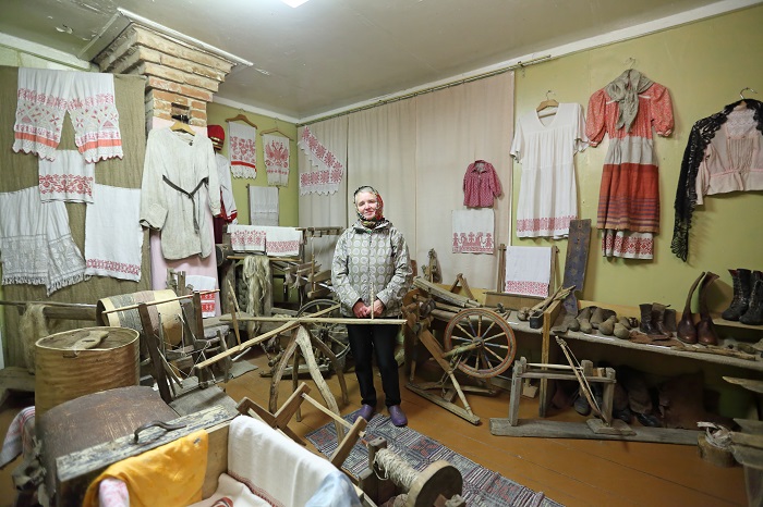 Большую часть экспонатов для музея Светлана Ивановна собрала вместе с учениками по заброшенным вепсским деревням. В коллекции — старинная посуда, традиционные наряды, орудия труда, изделия из бересты. Всего — около тысячи предметов и документов. Одно из помещений обставлено как изба: с кроватью, печкой и люлькой. Есть даже самодельная детская куколка.