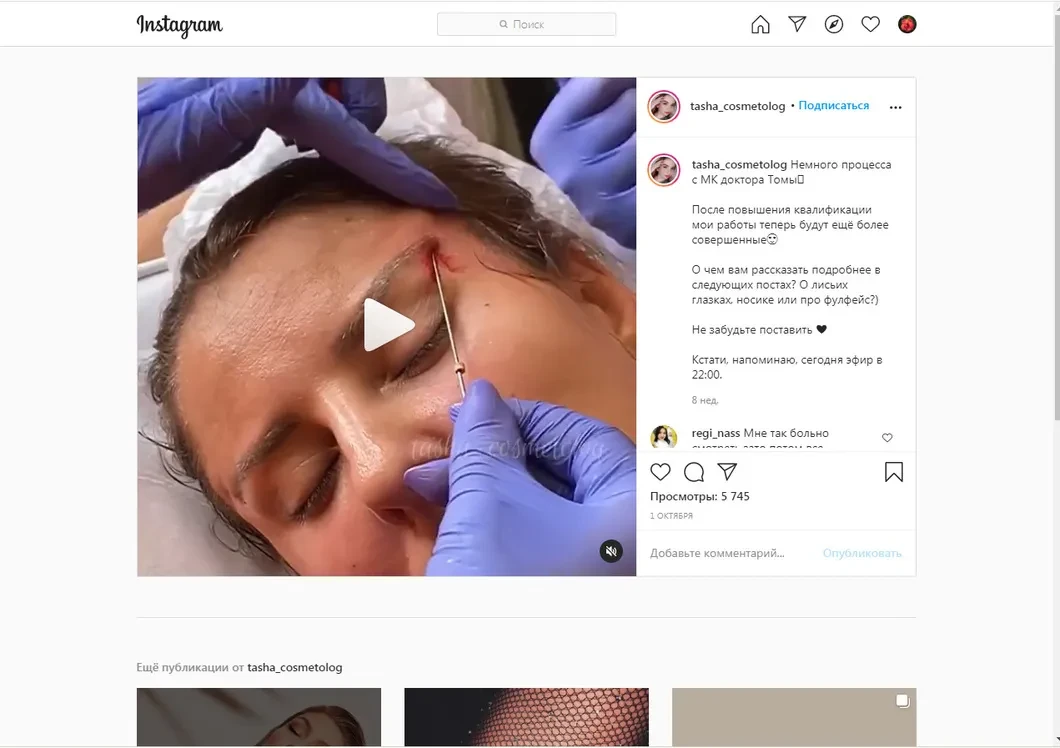 В пример Брауде привел доктора Тому, которая также представляется как Тома Рязанцева. 20-летняя девушка заявляет в «Инстаграме», что она квалифицированный врач и известна благодаря «лисьим глазкам» — процедуре по подтяжке век при помощи нитей. В результате глаза должны стать раскосыми, миндалевидными, а брови вытянутыми к виску, как у Беллы Хадид. Стоимость процедуры у ученицы Брауде составляет 135–150 тысяч рублей. Однако в случае некачественного выполнения процедуры можно лишиться зрения.