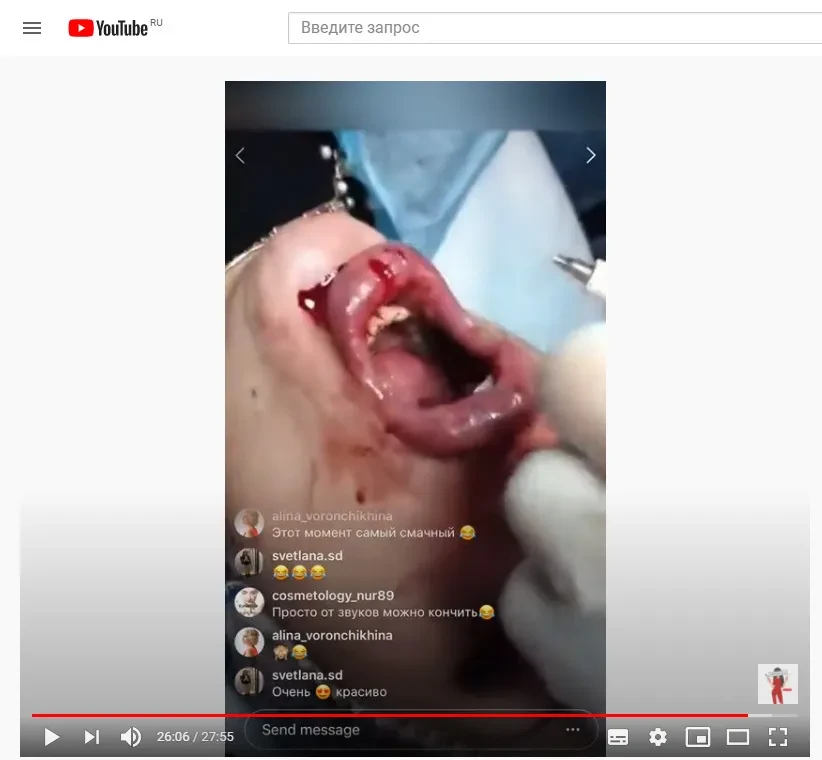 При этом он называет себя ведущим экспертом в косметологии. Также он открыто игнорирует соблюдение санитарно-эпидемиологических норм и делает инъекции, где угодно. Поэтому, судя по соцсетям Брауде, он проводит процедуры в полуподвальных помещениях, без перчаток, халата и других средств гигиены. Пациентка при этом может еще и прикуривать от сигареты, как показано на одном из видео.