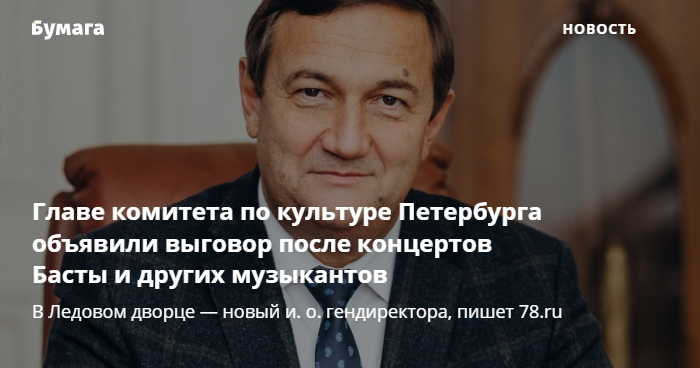 Главе комитета по культуре объявили выговор