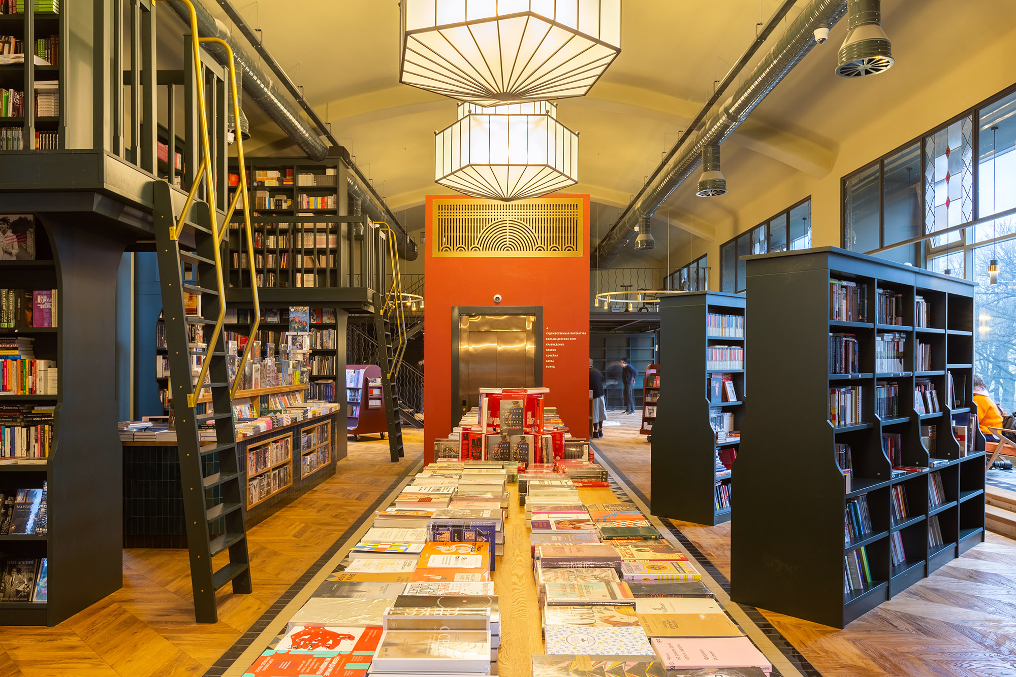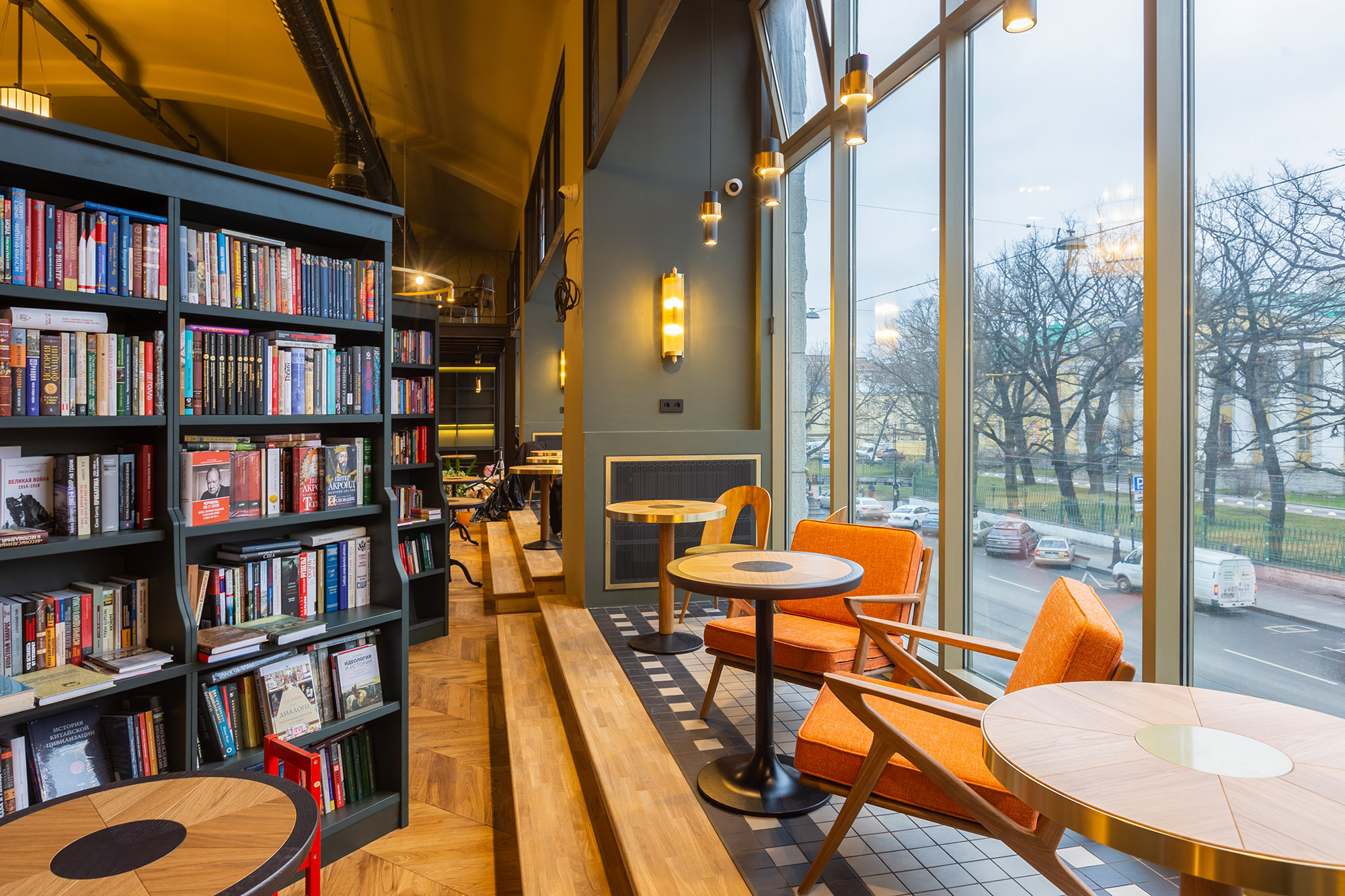 В магазине появились десятки мест для чтения, дальнюю часть зала заняло кафе от создателя «Смены». В будущем в магазине откроется собственная пекарня и заработает лифт.