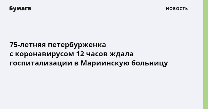 Вскоре 75-летней женщине стало еще хуже, Светлана вызвала скорую: медики приехали за четыре часа, в бюро госпитализации их направили в Мариинскую больницу. Женщину привезли в больницу в ночь на 30 ноября, однако свободных коек там не оказалось: сотрудники больницы взяли у петербурженки анализы, дали ей подышать кислородом. При этом несколько часов женщине пришлось лежать на кушетке.