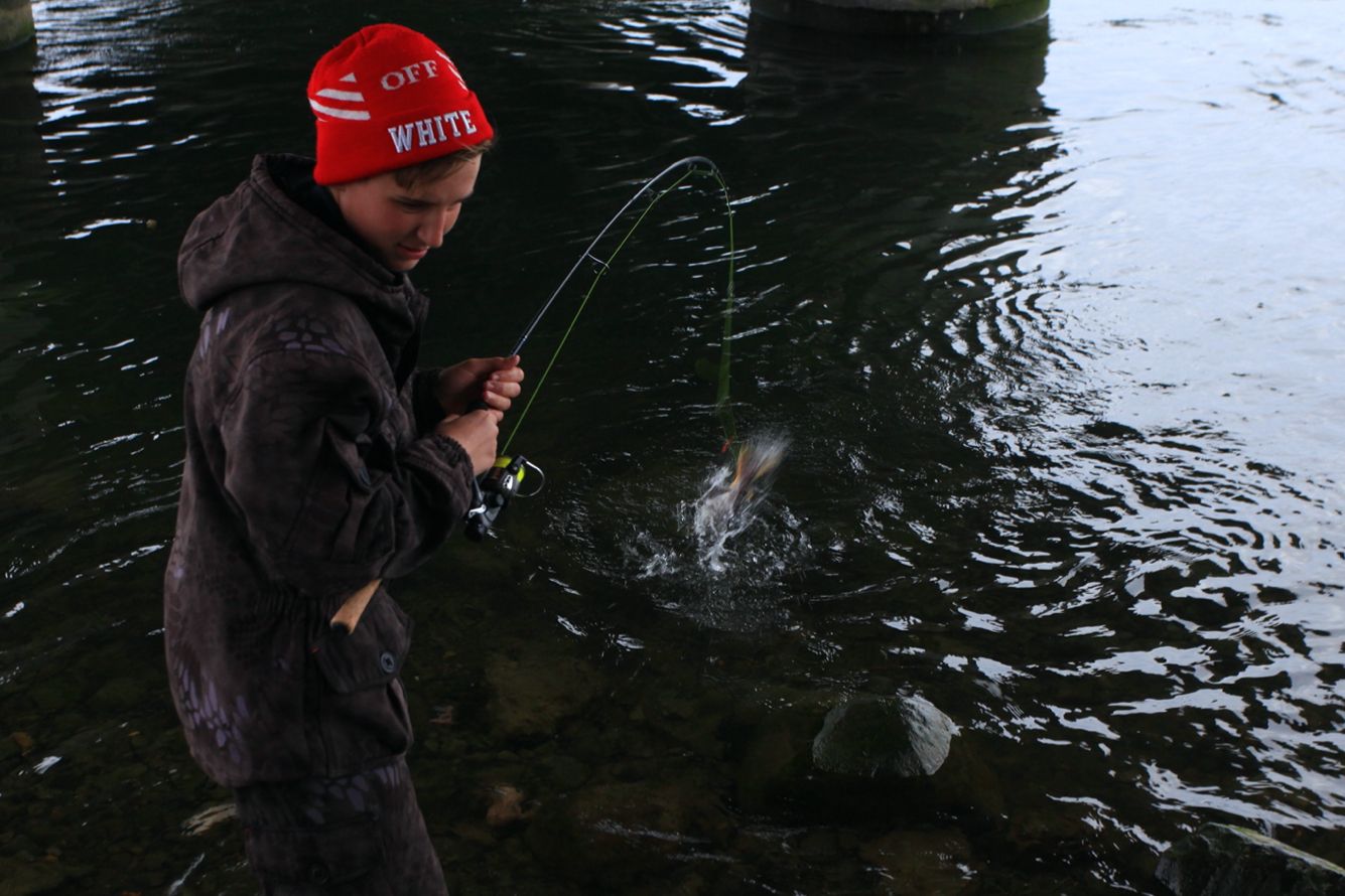 Осенью Саня приходит домой из школы, переодевается в камуфляж, берет с собой рыжего спаниеля Дину — чтобы сигнализировала о медведях — и направляется к мосту. На рыбалке, вне зависимости от погоды, Саня и Дима проводят целые дни. Тут же разжигают костер, готовят уху или запекают рыбу.
