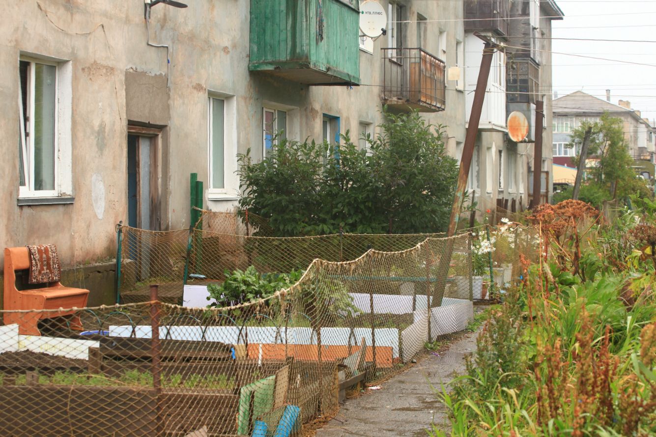 Дом Мартынюков — всего в полукилометре от Охотского моря, рядом сопка, заросшая высокой травой. Издали на ней видны тропы, протоптанные медведями, которые часто заходят в поселок и к Мартынюкам. Двор не огорожен забором, на огороде растет картошка, пара грядок клубники, кусты черной смородины.