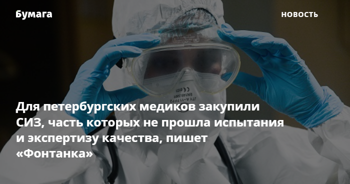 Власти Петербурга через горбольницу № 15 закупили для медиков, работающих с коронавирусом, средства индивидуальной защиты, часть которых не прошла испытания и экспертизу качества. Об этом говорится в расследовании «Фонтанки».