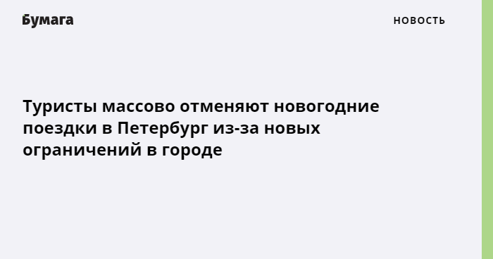 Туристы начали массово отменять поездки в Петербург на Новый год из-за ужесточения ограничений против коронавируса в городе. Об этом сообщает ТАСС со ссылкой на пресс-службу Российского союза туриндустрии.