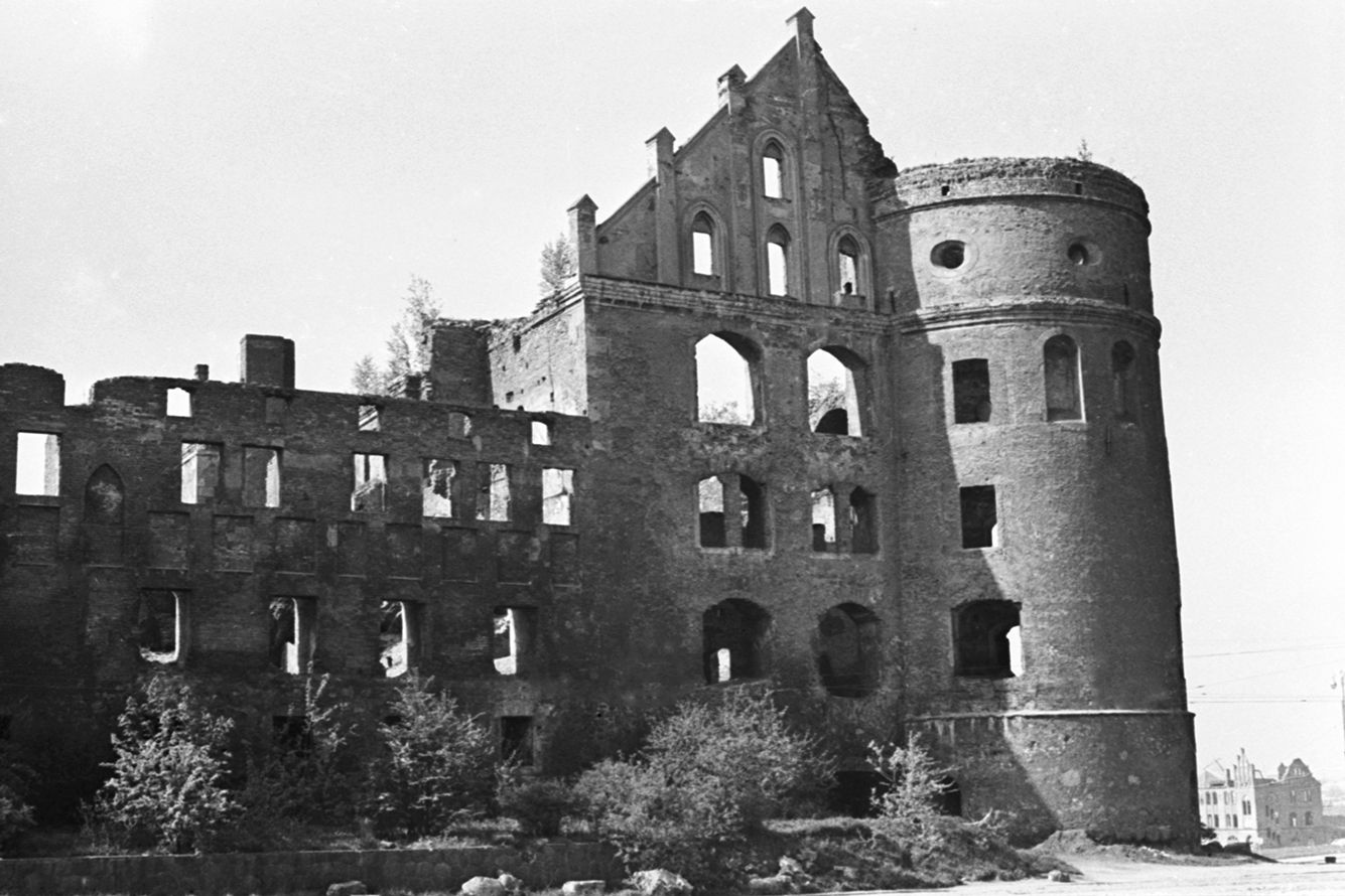 Город серьезно пострадал во время войны, и новые власти решили не восстанавливать его прежний облик. В результате снесли руины многих немецких построек, в том числе и развалины Кенигсбергского замка, на месте которого власти предложили соорудить Дворец Советов — 50-этажное административное здание, напоминающее сталинские высотки. Однако из-за «борьбы с излишествами», которая началась в середине 1950-х, эта идея трансформировалась, и вместо Дворца советов решили построить менее масштабный Дом советов, который теперь относят к советскому брутализму.