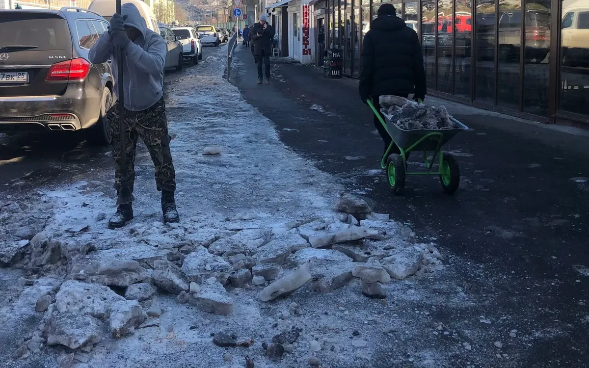 — У нас на подъеме на Тунгусской гололед, — рассказывает горожанин Сергей. — Сегодня шел на почту, взял с собой лыжную палку и мало-помалу взобрался. У нас там есть проход, по нему в хорошие времена даже машины проезжают, но сейчас вообще никак. А папа мой, ему уже 80 лет, тоже не может дома сидеть. Звонит — говорит, купил себе ледоступы.