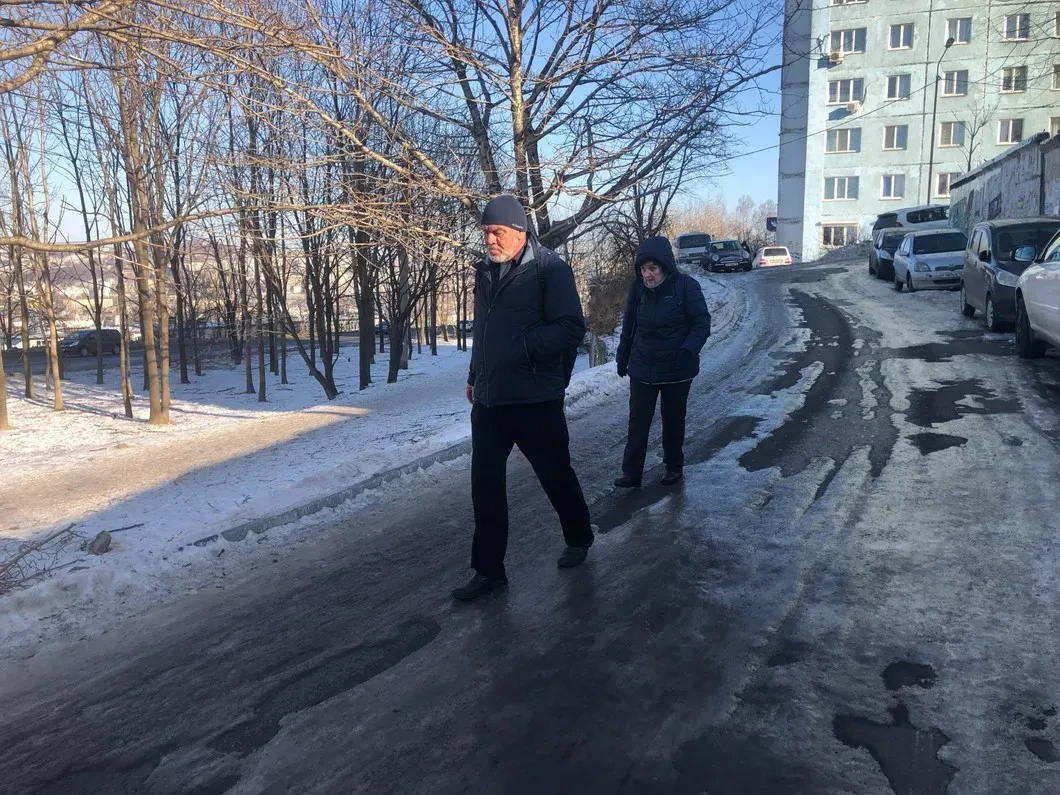Во Владивостоке сейчас на ура идут и зимние кроссовки с шипами, и ледоступы (резиновые накладки с шипами на обувь, стоят до 250 рублей пара, можно приобрести и на местном сайте объявлений, и даже в некоторых аптеках).