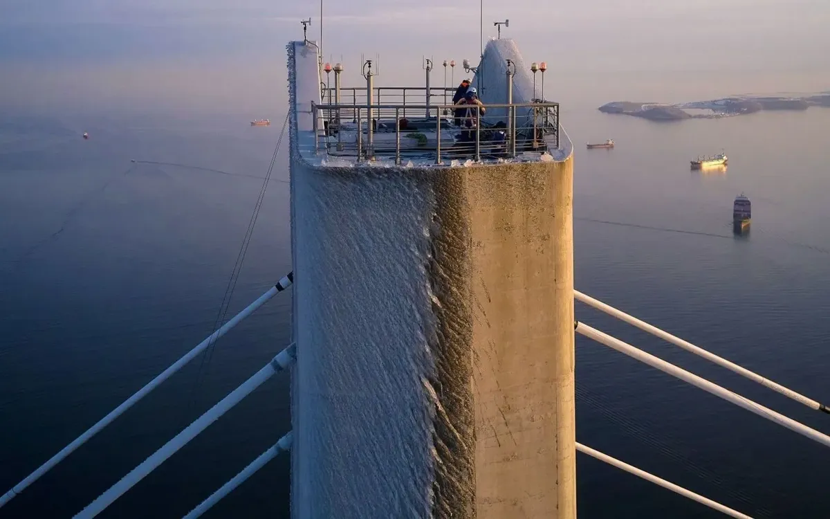 ледяные массы были удалены с 23 из 168 вант, в день очищали по 3 тысячи кв.м. пилонов.