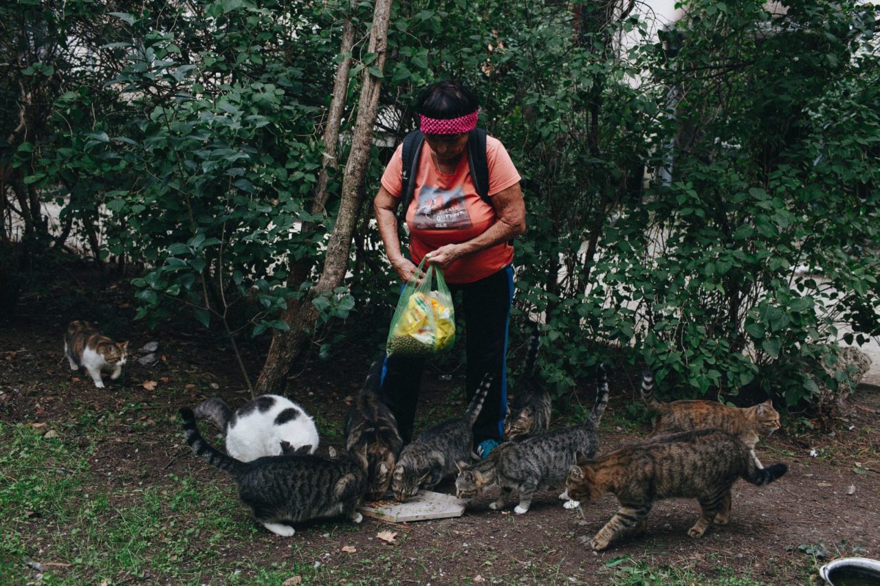 Эльвира Тимофеевна подкармливает дворовых котовФото: Лия Кравец для ТД