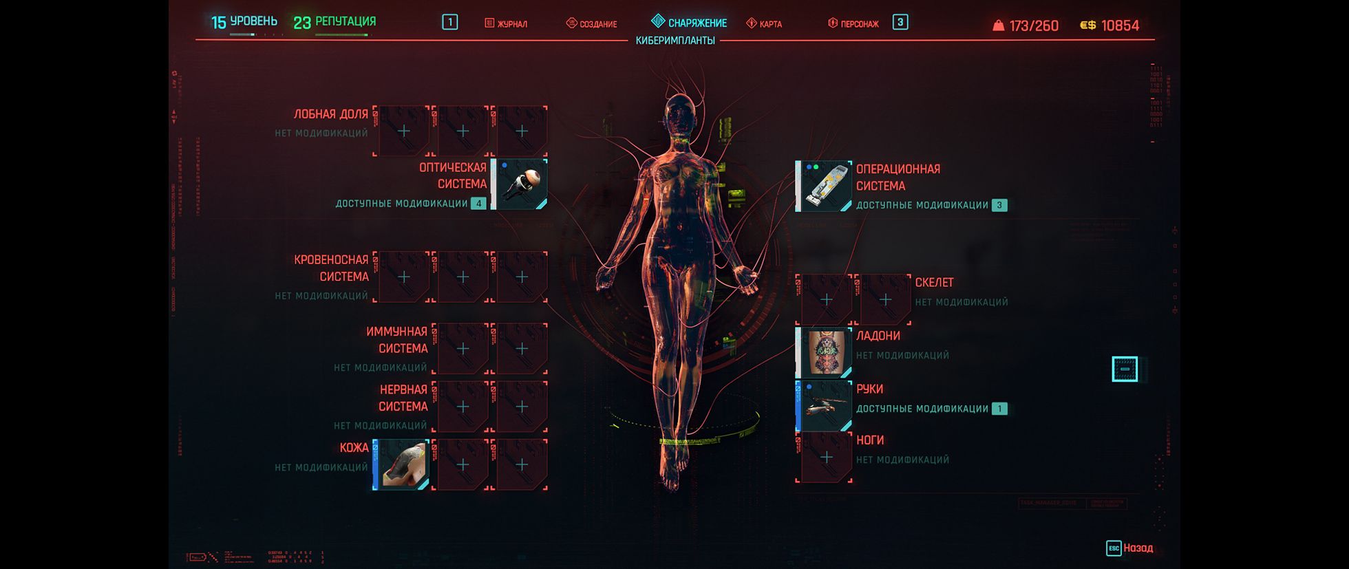 Еще одна хаотичная (на этот раз, подозреваю, намеренно) часть игры — это прокачка навыков. Внутри каждой из пяти характеристик скрывается еще по 2–3 вкладки с деревьями специальных навыков. Одна вкладка по-разному влияет на стрельбу из пистолетов, другая — на урон от клинков, а третья — на ваши хакерские способности. Многие из навыков тут либо пассивны, либо лишь на несколько процентов повышают урон или другую характеристику, поэтому Ви у меня получилась обученной всему и ничему одновременно.