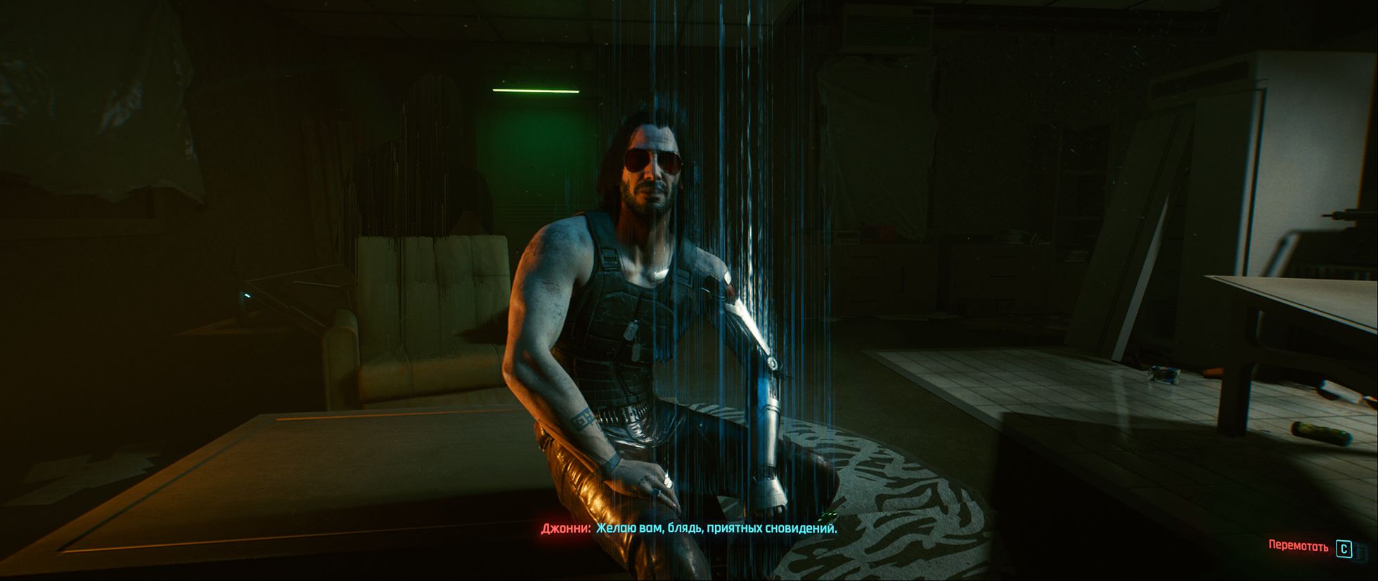 Все диалоги в игре озвучены и более того — озвучка переведена на несколько языков, включая русский. Правда, если это не сильно помешает вашему погружению в мир Cyberpunk 2077, я бы все же посоветовал оставить озвучку на английском языке: там интонации переданы намного достовернее. И к тому же есть возможность услышать голос самого Киану Ривза. То есть Джонни Сильверхенда.