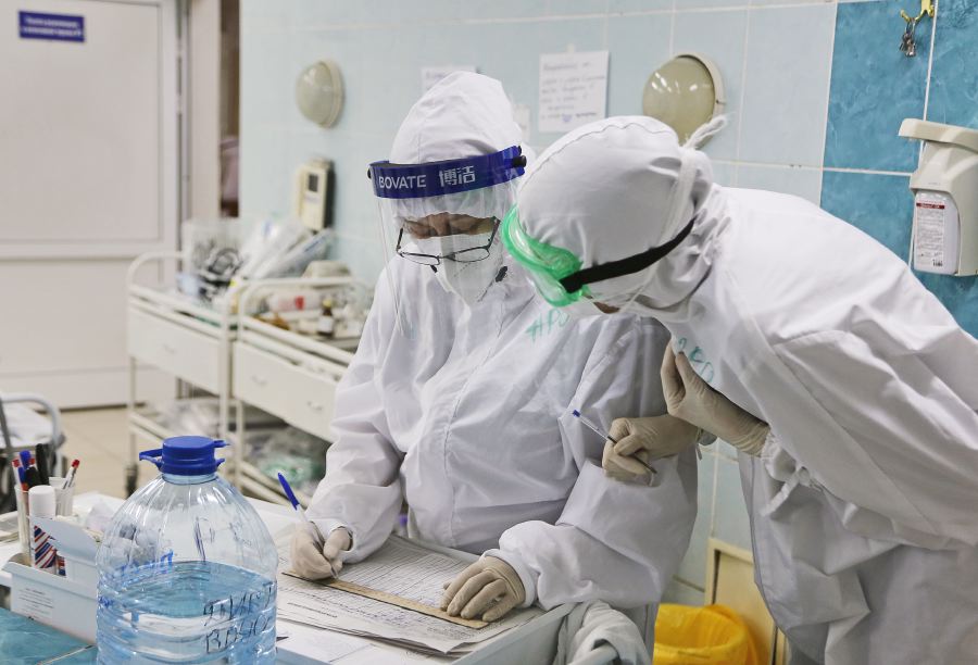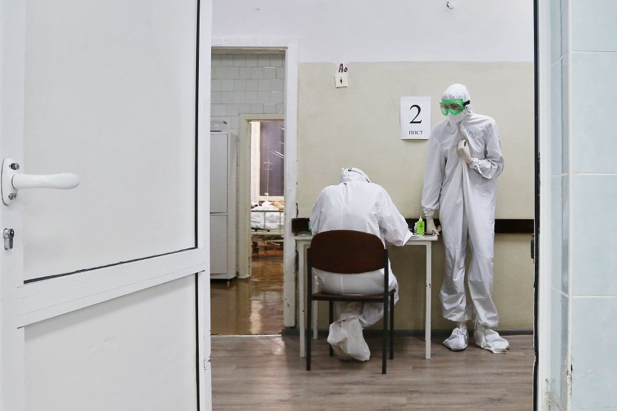 Волгоград. Медики в инфекционном госпитале на базе клинической больницы скорой медицинской помощи № 15, где лечат людей с COVID-19Фото: Дмитрий Рогулин/ТАСС В конце марта также началась «эра гидроксихлорохина». По мере того как энтузиазм в отношении его эффективности при COVID-19 во всем мире спадал, рекомендации Минздрава по его использованию также сокращались. Однако он по-прежнему остается в рекомендациях, несмотря на кардиотоксичность.