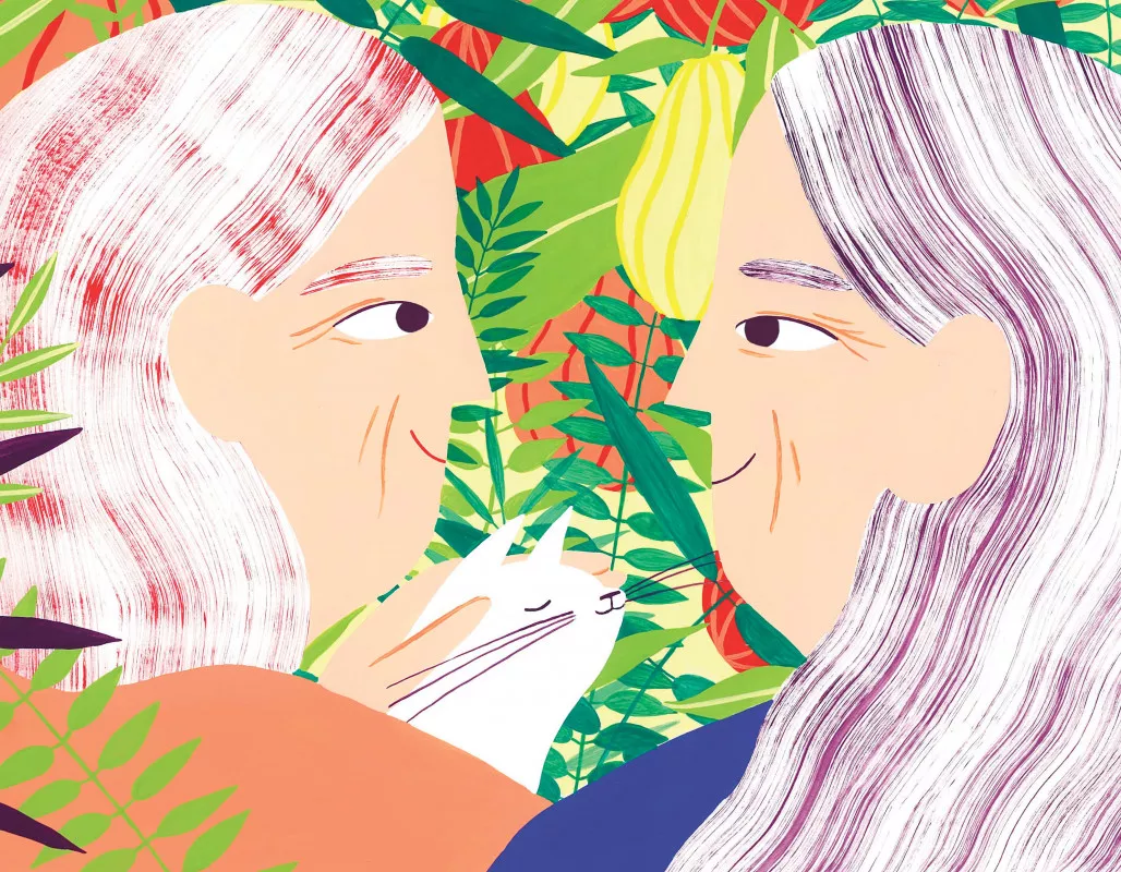 Художница-иллюстратор Лаура Д’Арканджело в своей дебютной книге заходит на квир-территорию вообще без всяких слов, — чем и восхищает экспертов, знатоков детской литературы. «Ada + Eva» в 36 сочных, цветистых, напоминающих примитивиста Анри Руссо, фрагментах визуализирует историю встречи, влюбленности и не лишенной сложностей совместной жизни двух молодых женщин.