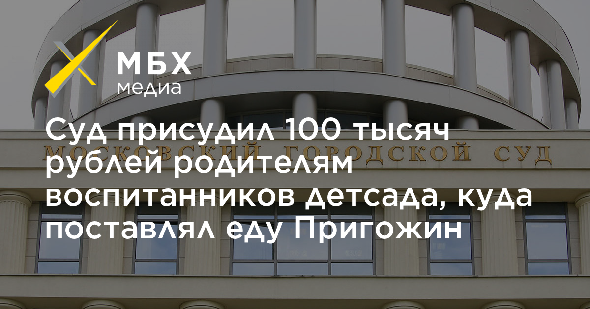 Мосгорсуд обязал выплатить компенсацию в 100 тысяч рублей родителям отравившихся воспитанников детсада при школе № 1095, куда поставляла еду компания “Московский школьник”, связанная с бизнесменом Евгением Пригожиным. Об этом рассказала “МБХ медиа” юрист Фонда борьбы с коррупцией Любовь Соболь.