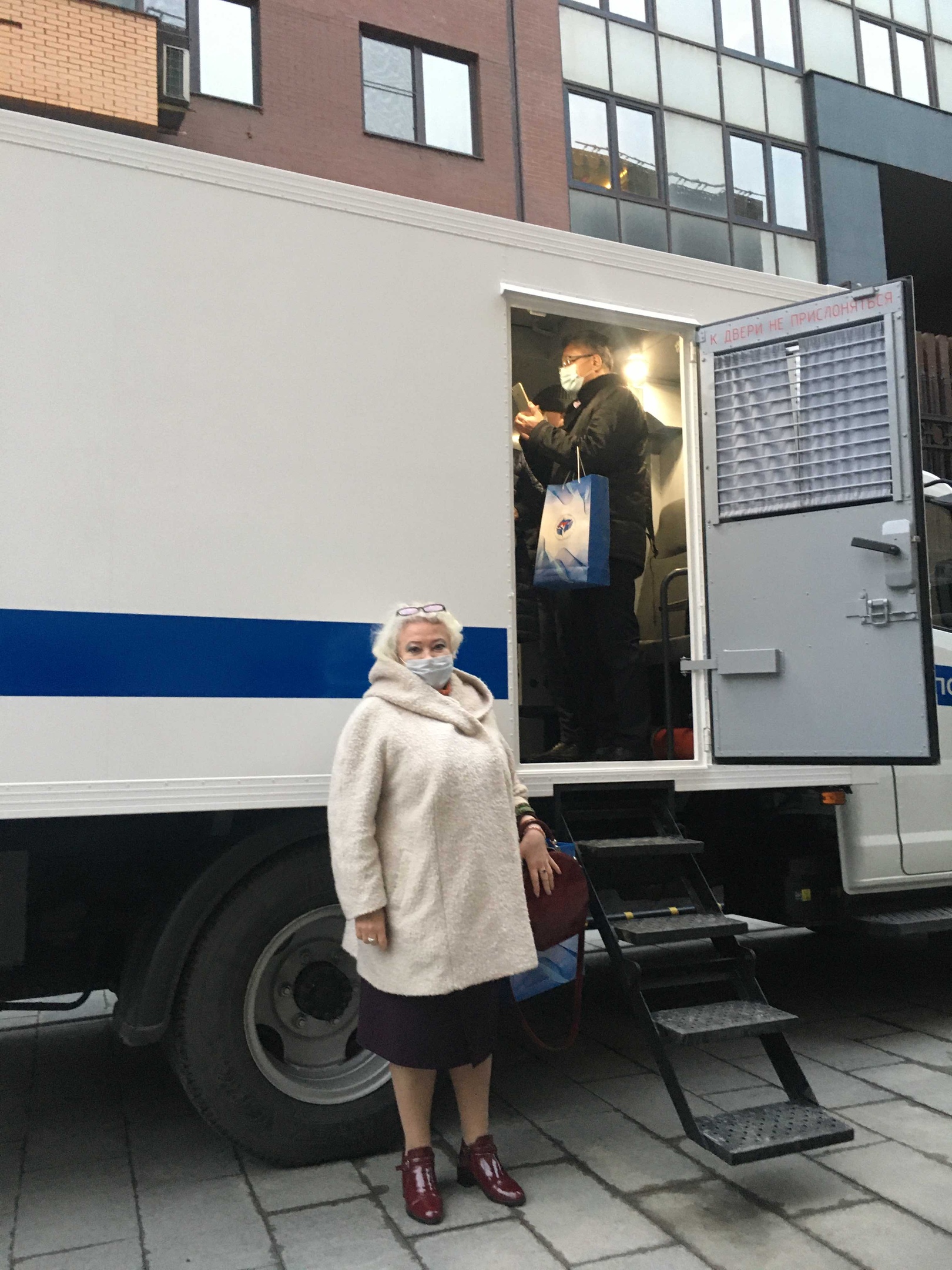 Лариса Бойченко у новых автозаков в Москве. Фото: личная страница в ВК