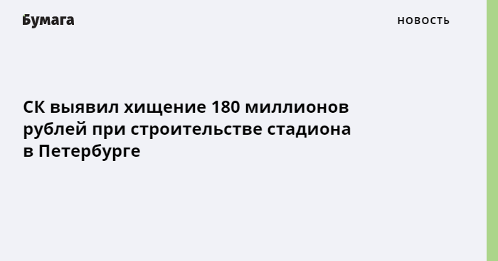 СК выявил хищение 180 миллионов рублей при строительстве «Газпром Арены»