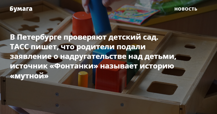 По данным источника ТАСС, проверку проводят правоохранительные органы. Источник утверждает: «поступило заявление от родителей, что в детском саду персонал надругался над их детьми».