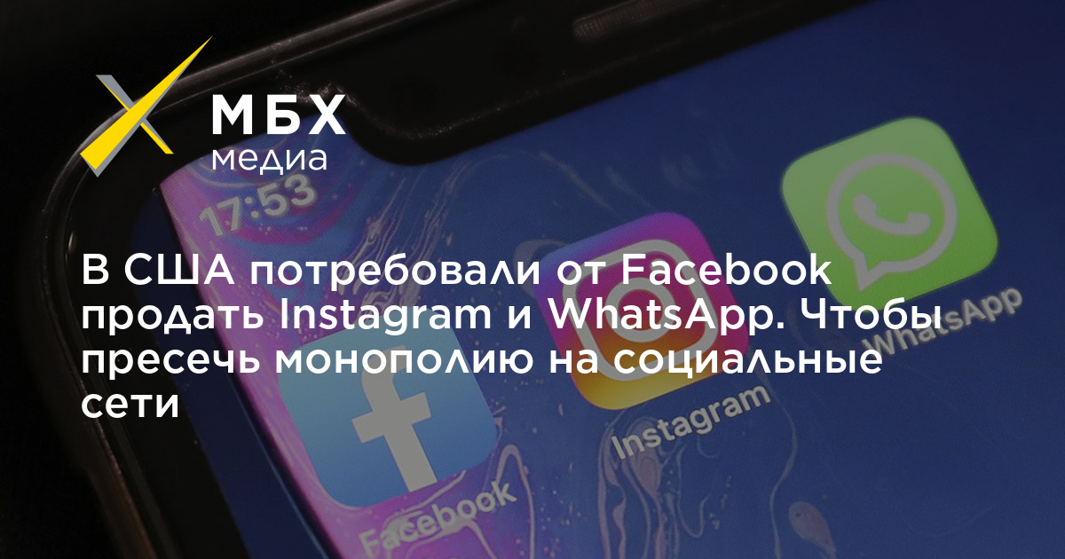 В США потребовали от Facebook продать Instagram и WhatsApp. Чтобы пресечь монополию на социальные сети