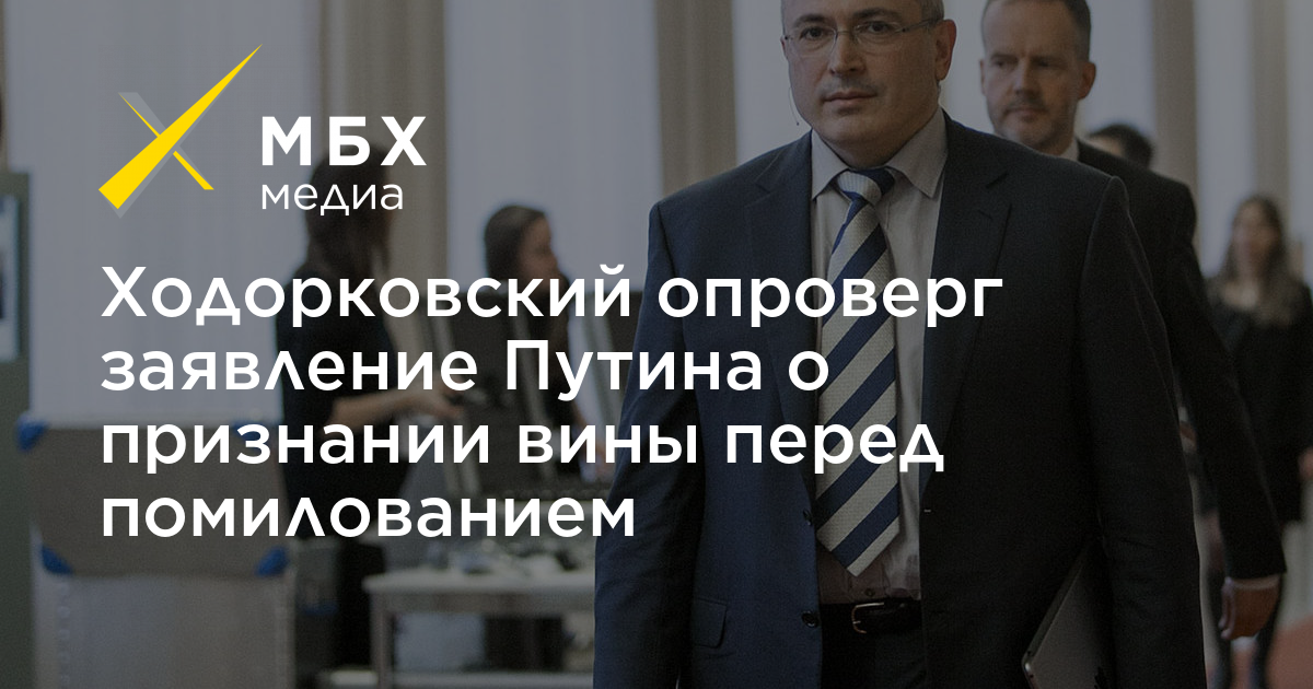 Михаил Ходорковский опроверг заявление Владимира Путина о косвенном признании вины перед помилованием в 2013 году. Об этом Ходорковский сообщил «МБХ медиа».