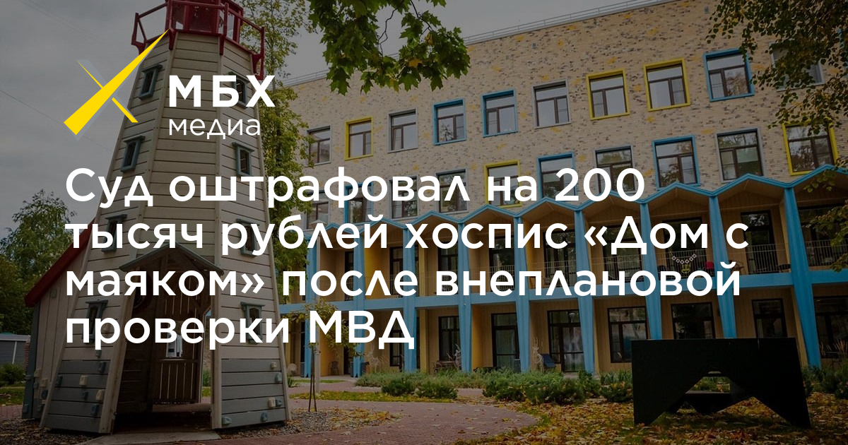 Суд оштрафовал на 200 тысяч рублей хоспис «Дом с маяком» после внеплановой проверки МВД