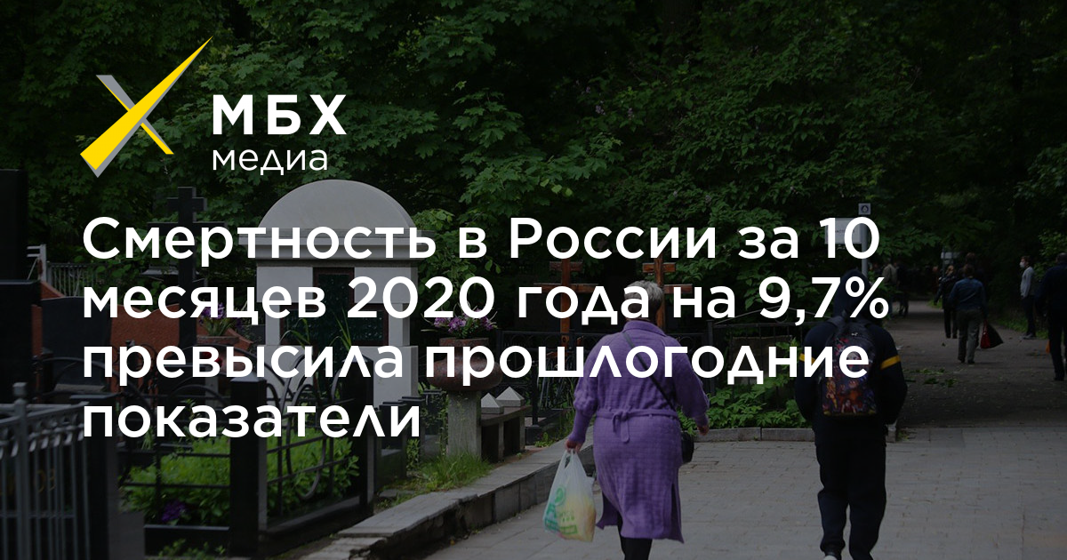 Смертность в России за 10 месяцев 2020 года на 9,7% превысила прошлогодние показатели