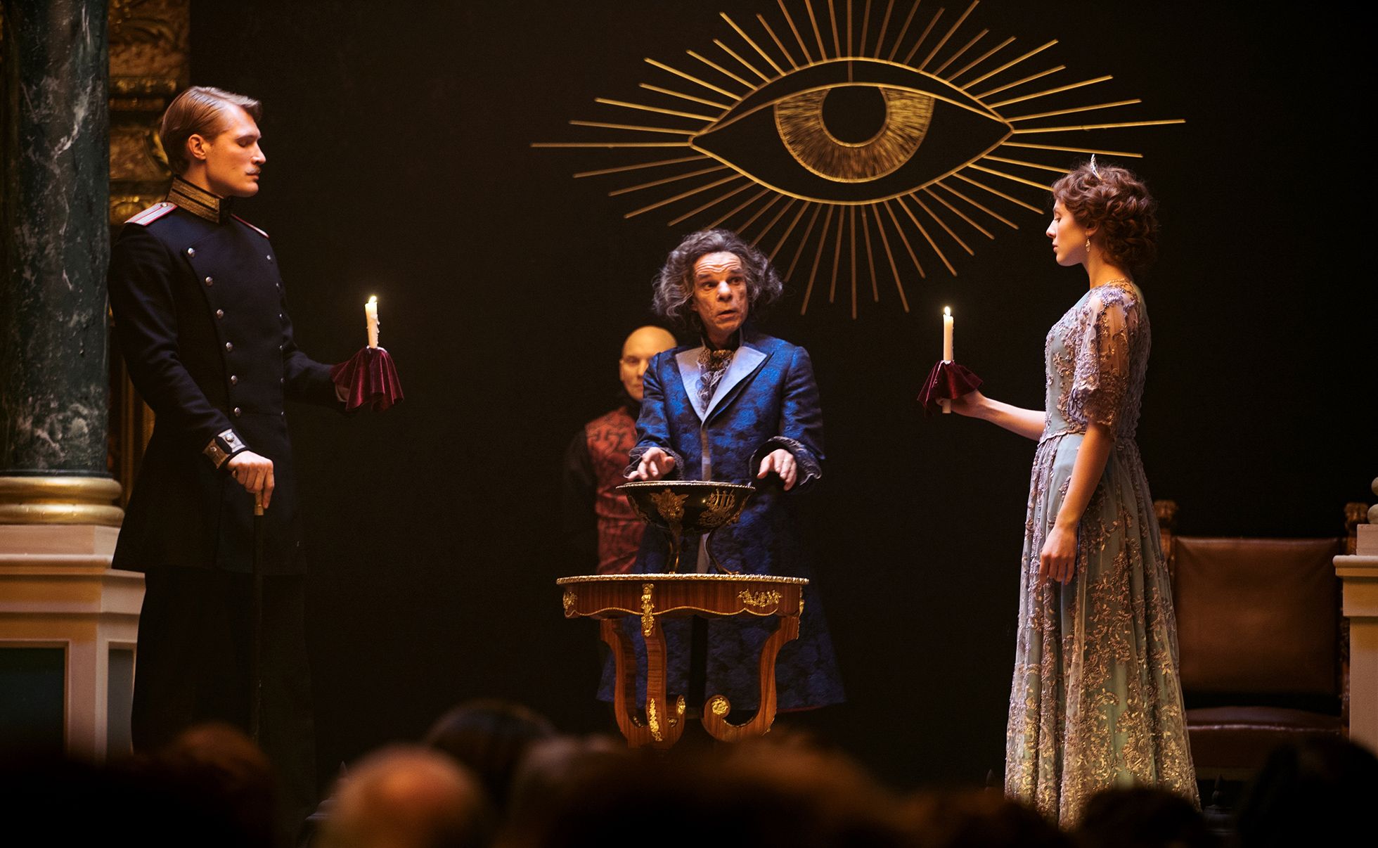 Это, конечно, не ремейк, но аналогий предостаточно. В центре интриги — счастливая, но неравная любовь между богатой наследницей и симпатичным бедняком. Ей препятствует жених, прячущий под лощеной внешностью агрессию и расчет. Все происходит на фоне разодетой массовки и роскошных декораций fin de siècle. Есть даже корабль, где разворачивается кульминация. Правда, он никуда не плывет, а вмерз в лед Невы, и не тонет, а горит.