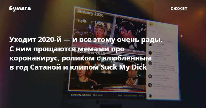 «Бумага» собрала клипы, видео и мемы, в которых прощаются с ненавистным 2020-м.
